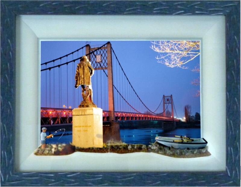 Pont d'Ancenis, passepartout carton plié "convexe". Décoration inférieure fait main.